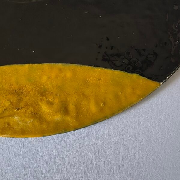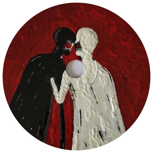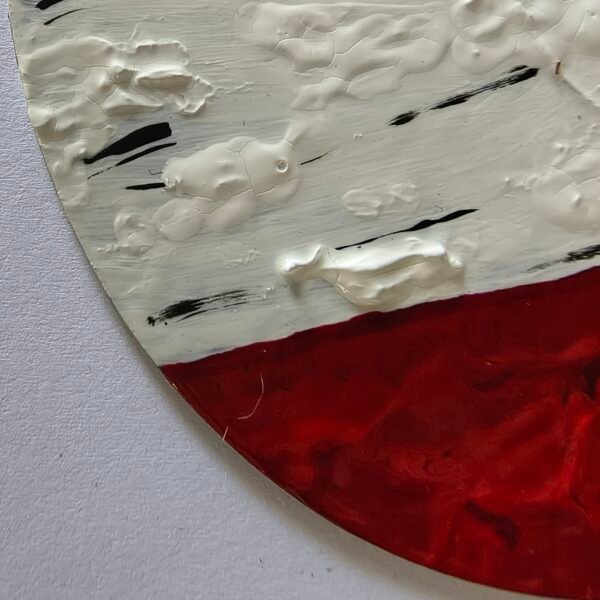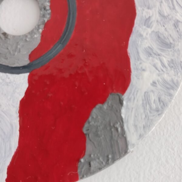 We’ll start with the work O OLHO (The Eye). This piece emerged from a deep desire to explore perception and the intensity with which we see the world. The image of an almost abstract eye, with an intense red center, surrounded by bursts symbolizing life, emotion, and even pain. The raised surface of the eye captures a sense of depth, as if we’re looking beyond the surface. The blood veins on the sides complete the idea that to see truly is to feel...