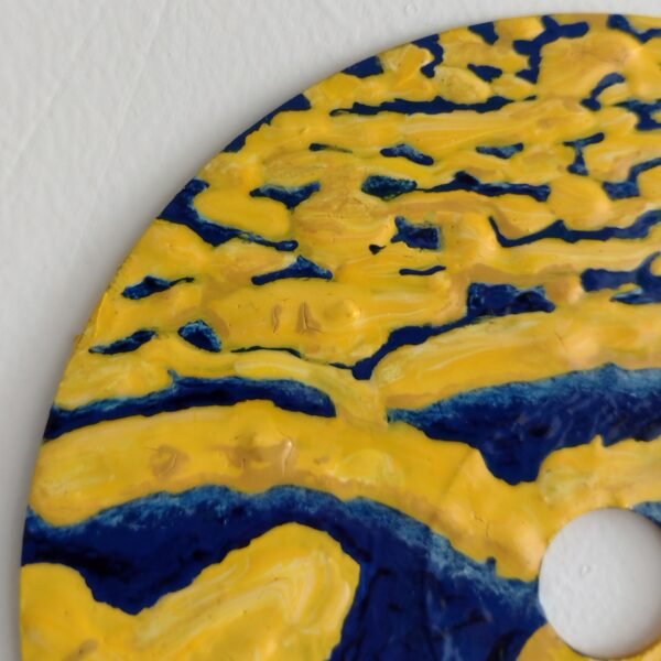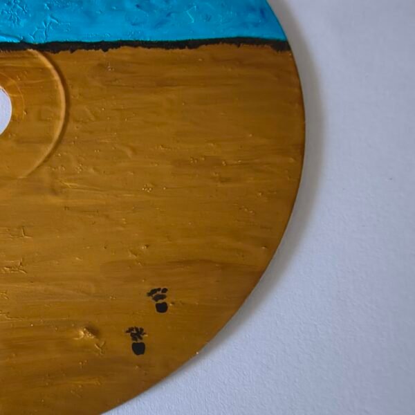Next, we have PAISAGEM 1 (Landscape 1). This piece was born from memories, a connection with nature, from a yellow sky that seems to carry both calmness and mystery. The tall palm trees, the road disappearing in the distance, the dark waters... all come together to create a feeling of solitude and vastness. It’s about the path we walk and what we leave behind...